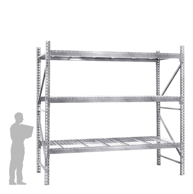 3-Tier Galvanized Teardrop Pallet Rack Starter Units w/ Wire Decking - 48"d x 144"h