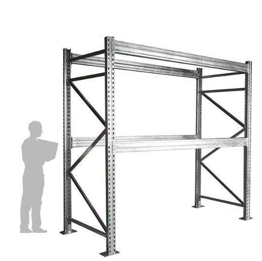 2-Tier Galvanized Teardrop Pallet Rack Starter Units - 48"d x 120"h